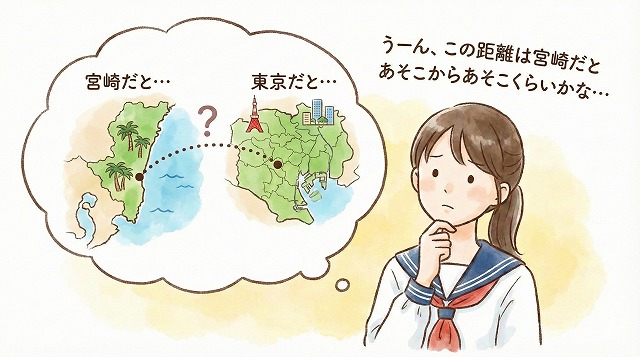 私たちは、「宮崎のあの場所からあそこまで行くくらいの感覚だよ」と、あなたに伝わる言葉でリアルな距離感を教えます。